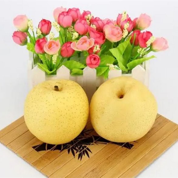 Je pomenovaný po meste Laiyang, je jednou zo známych špecialít provincie Shandong. Má žltozelenú šupku. Jemným ošklbaním jeho mierne drsnej a hnedo škvrnitej šupky budete hlboko ohromení jeho krémovo bielou a šťavnatou dužinou, ako krémovo biela zmrzlina. Stačí jedno sústo a ovládne vás sladká a jemná chuť!